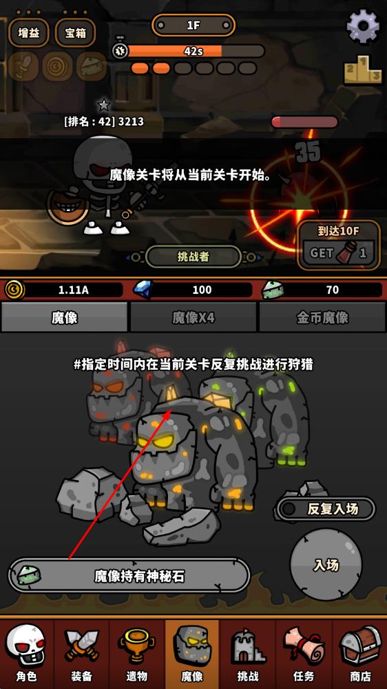 2、多元玩法体验:包含爬塔、魔像副本等多样玩法,每种玩法带来不同挑战,丰富游戏内容,满足玩家多样化的冒险需求。