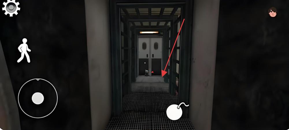 1、进入游戏,操控虚拟摇杆移动,面对昏暗通道,小心前行,留意环境找逃离线索。