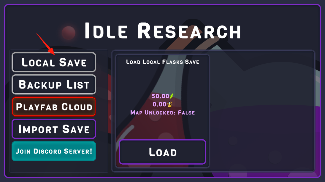 1、进入空闲研究存档界面,点击“LOCAL SAVE”,可查看本地存档详情,借存档管理机制,选择加载本地进度,延续游戏进程,体验存档系统的便捷性,感受游戏数据管理的功能。