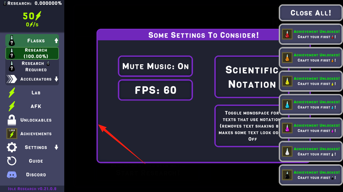 3、打开“Some Settings To Consider!”界面,可调整“Mute Music”“FPS”等设置,借自定义设置机制,优化游戏体验,适配个人偏好,体验玩法外的个性化配置,感受游戏的灵活性。