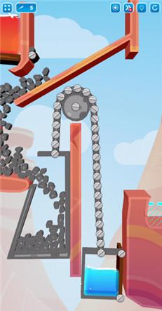 3、控制水流避免飞溅:水在峡谷中容易飞溅并自由流动,玩家的核心任务之一就是阻止这种无序现象,通过精准操作引导水流有序前行,确保水能顺利抵达指定位置。