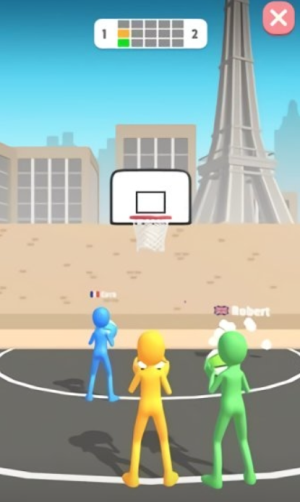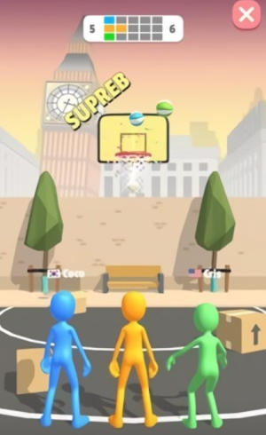 1、采用夸张的橡皮人造型设计,角色动作滑稽充满魔性趣味,投篮时的表情变化与肢体语言带来欢乐的游戏氛围。