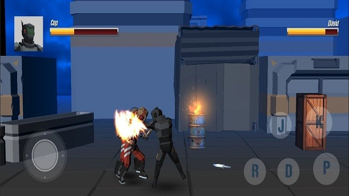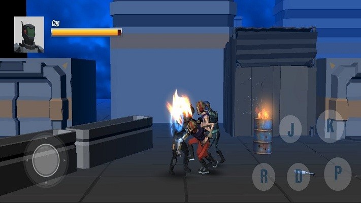 2、战斗场景中,通过左侧摇杆控制移动,利用右侧“J”“K”“R”“D”“P”按键发起攻击,对抗敌人。