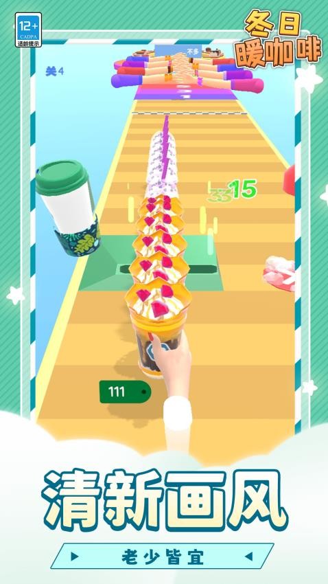 冬日暖咖啡安卓版将化身为移动的咖啡杯,沿着赛道收集咖啡原料。沿途需要精准接取咖啡液、牛奶等材料来调制饮品,终点处将成品交给等待的顾客即可获得奖励。操作简单直观,只需滑动控制方向,系统会提供路线指引。随着游戏推进,还能解锁更多配方提升咖啡品质,吸引挑剔的客人光顾。画面清新明快,适合休闲时刻体验经营咖啡店的乐趣。