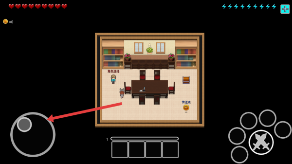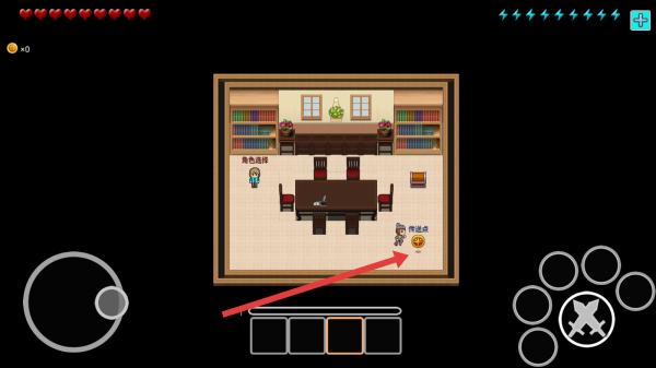 1、操控左侧虚拟摇杆,移动房间内的角色,探索场景,靠近目标区域开启互动,推进游戏进程。