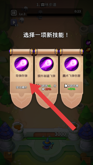 2、击杀敌人时就会有经验值,升级获得天赋技能,可根据目前所缺的选择第2个火球的技能。