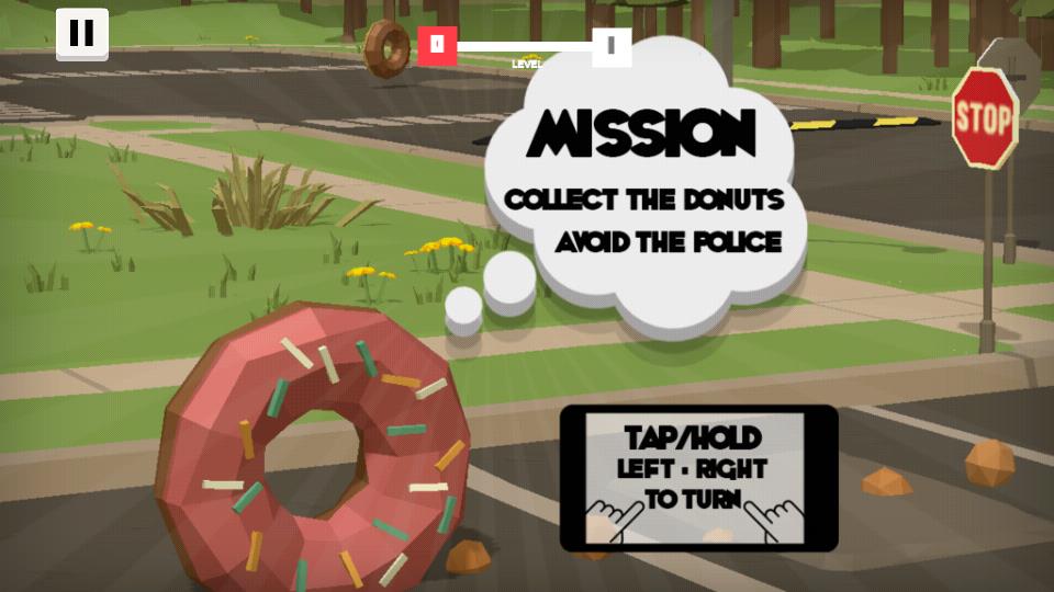 mm甜甜圈打造出充满趣味的竞速体验,你将操控甜甜圈穿梭于街道,既要躲避警察的追击,又要收集沿途散落的甜甜圈,还要按地图指引前往甜甜圈商店完成交易,低模风格的画面清新别致,搭配简单的操作方式——按住触摸屏左右两侧即可控制方向,都能让人在轻松氛围中享受独特体验,喜爱甜甜圈的你不容错过。