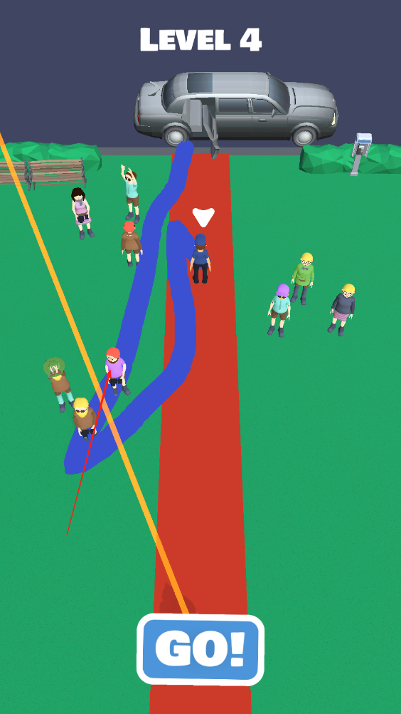 3、安排一个保镖处理红色小人,再让旁边的保镖推开老板必经之路上的人,给老板清出一条安全的通道。