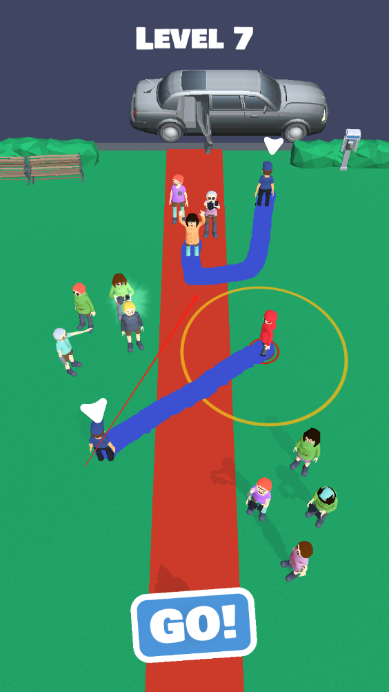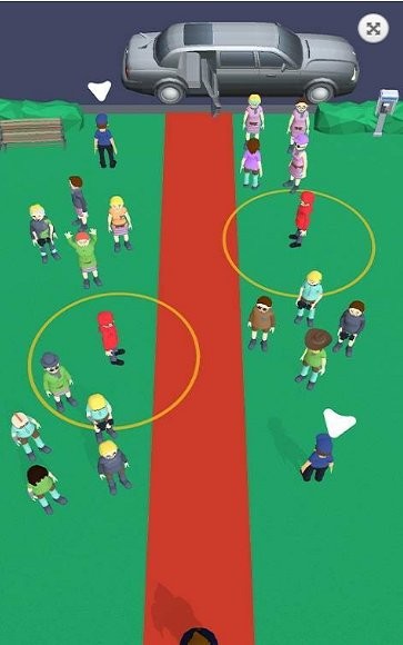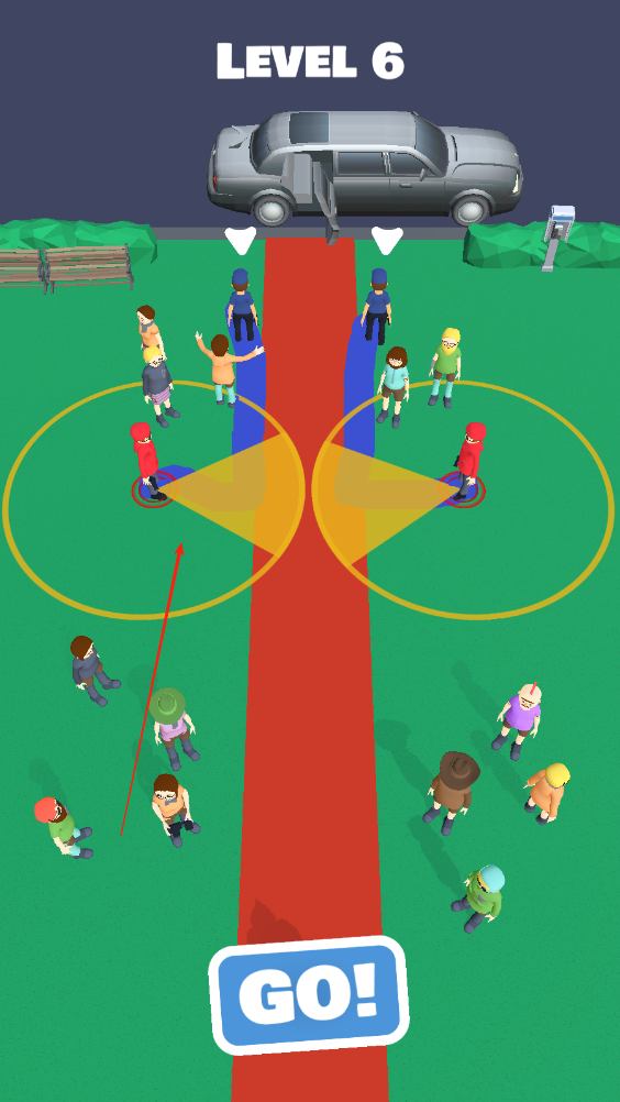 2、红色小人也会攻击老板,我们需要在老板走到红色小人的范围圈之前,让遍布两头的保镖将两个红色小人拦下。
