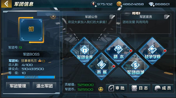 军团作为玩家交流互动交流平台新版本增加了强大的军团功能玩家进入军团后可通过军团的各种功能体验到一个游戏中最核心的多人互动模式。