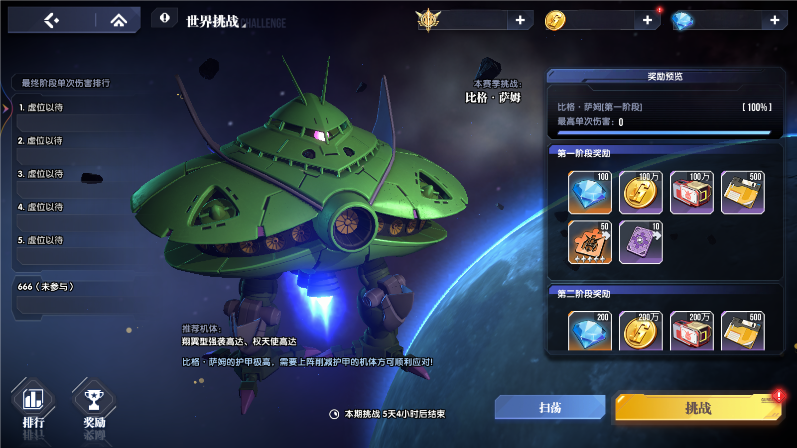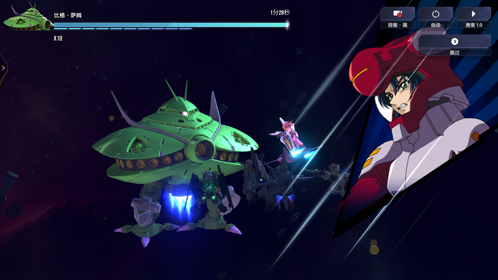 除了固定的正义高达和天帝高达以外,剩余的两个位置可以在自由高达(进一步增强火力输出)、力天使高达(辅助、充能)、ν高达(辅助)、百式(巩固前排防御)里根据实际情况选择。