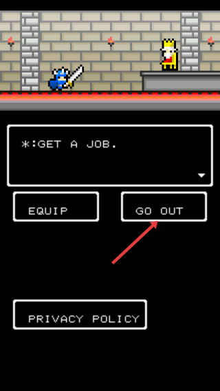 1、进入游戏,点击GO OUT按钮,让角色走出当前区域,开始新的冒险旅程。