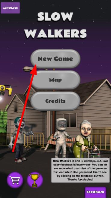 1、在游戏主界面,点击New Game按钮,开始SLOW WALKERS新游戏,进入郊区关卡冒险。