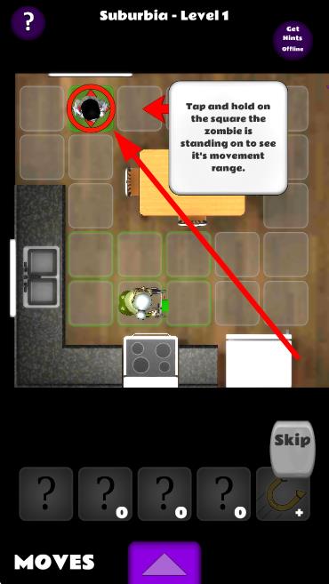 3、界面中,根据提示长按僵尸所在方格,查看移动范围,规划角色行动,推进关卡。