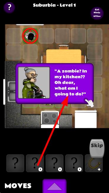 2、进入Suburbia - Level 1,查看紫色对话框的剧情提示,了解任务背景,准备应对厨房僵尸。