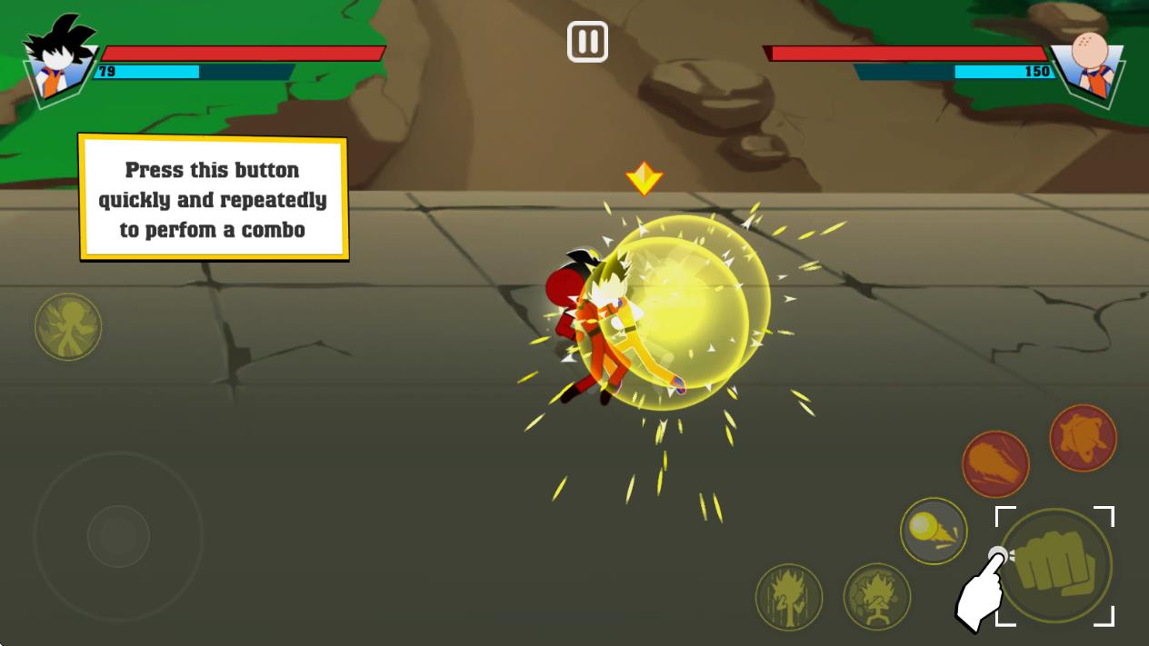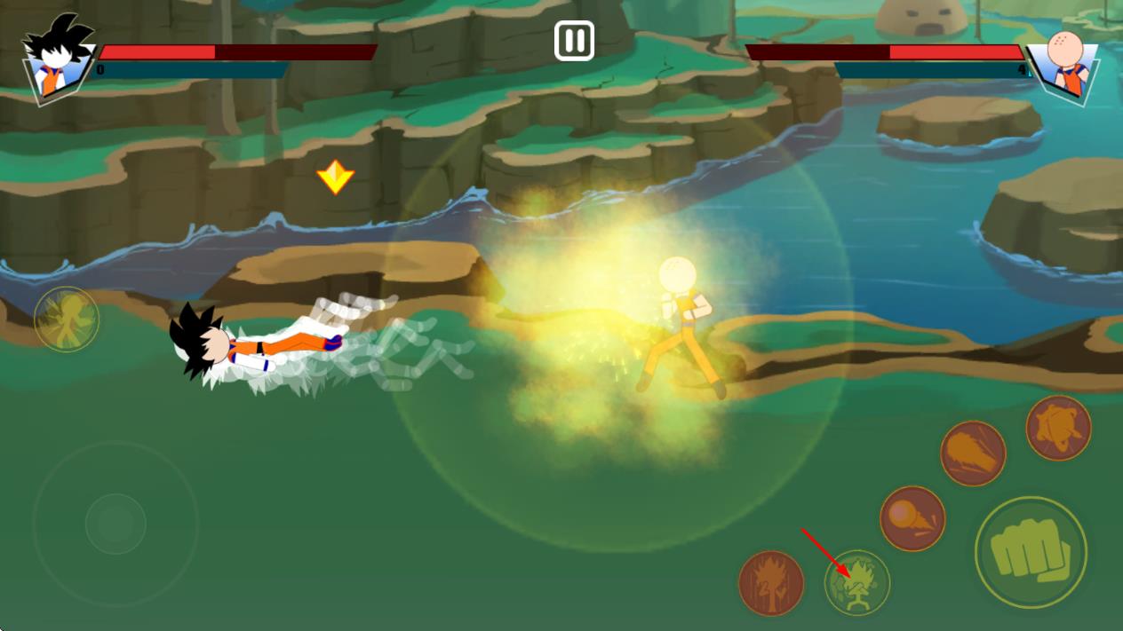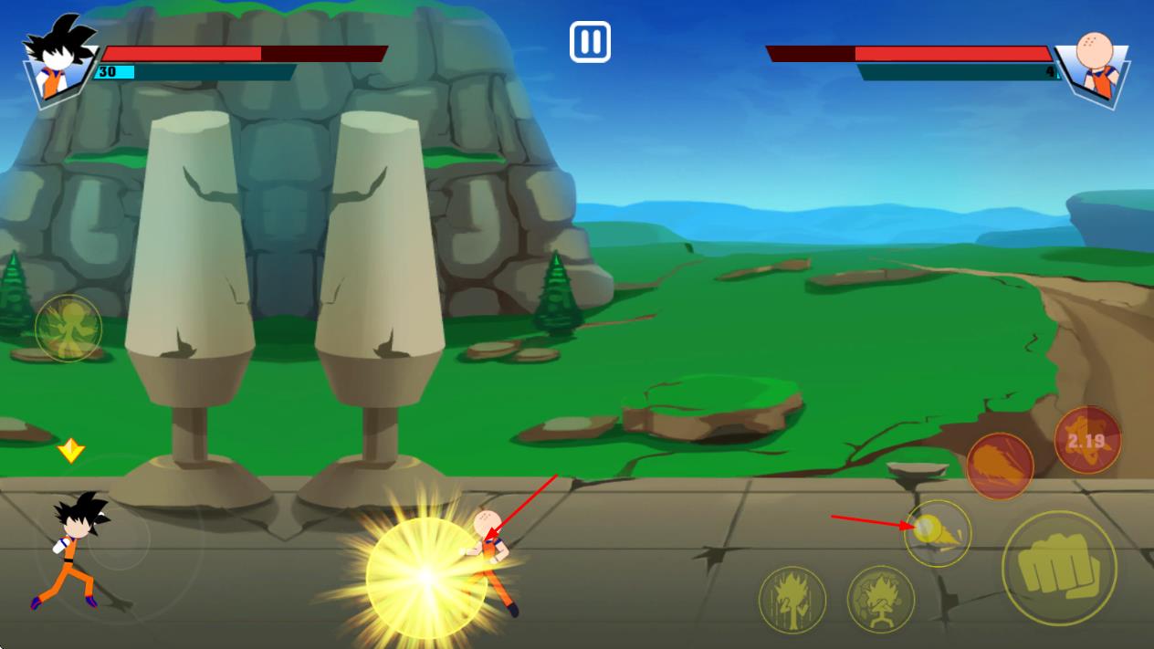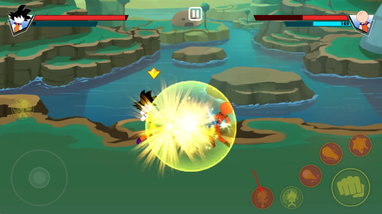 1、火柴人龙珠风格融合:将经典火柴人形象与龙珠元素结合,角色造型简洁却充满力量感,技能特效还原热血战斗氛围,视觉冲击力强,龙珠里元气弹。
