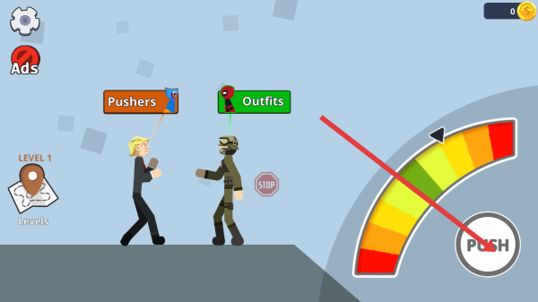 1、一入游玩页面,点击右下角的push按键,两位角色需要相互攻击,滑动缩放画面,检查周围工具。