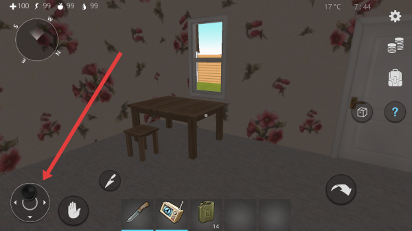 1、通过左下角虚拟摇杆操控角色在房间内移动,探索环境,留意桌上、地面等区域的可互动物品,为后续行动收集资源。
