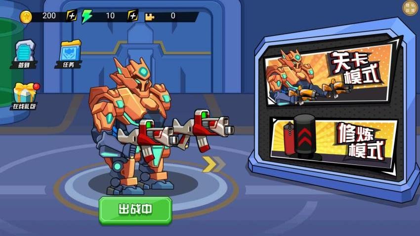 1、进入游戏后先收集机甲装备,给角色搭配一套防御力强的套装,这样在对战时能更好扛住敌人的猛烈攻击,站稳脚跟。