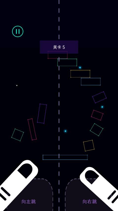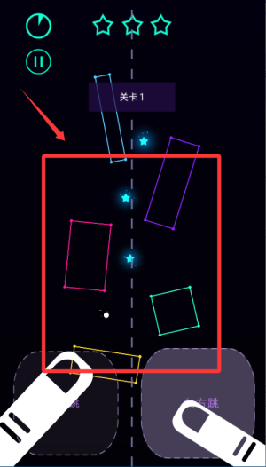 1、进入关卡后先观察彩色方块的排列和移动规律,找准它们的间隔节奏,为下一步跳跃做好准备。