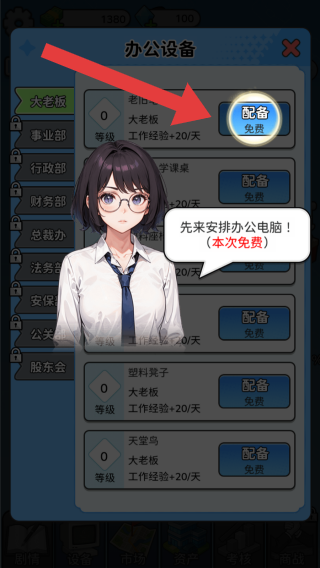 3、增加了两名新员工,办公的设备也需要跟上,可先进行选择办公的电脑,点击配备本次免费进选择。