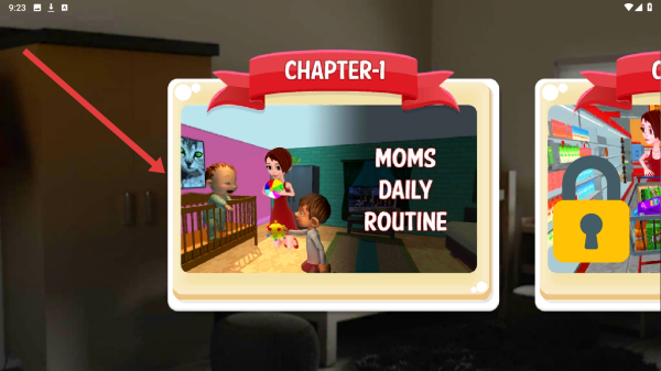 2、在章节界面选择CHAPTER-1的MOMS-DAILY-ROUTINE章节,进入对应关卡,开启妈妈日常任务的挑战流程。