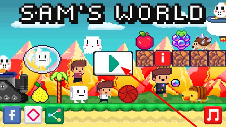 1、进入游戏主界面,点击白色带绿色箭头的播放按钮,开启像素风冒险,操控Sam拯救朋友。