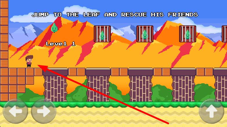 2、按提示JUMP TO THE LEAF...,操控Sam移动,用左右键,遇到障碍跳跃,向笼子方向前进。