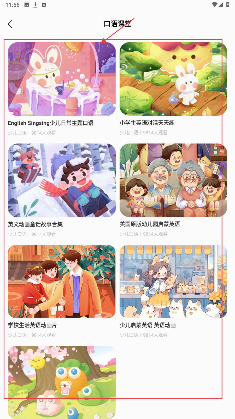 2、在口语课堂列表,选喜欢的课程(如EnglishSingsing),开始英语学习。