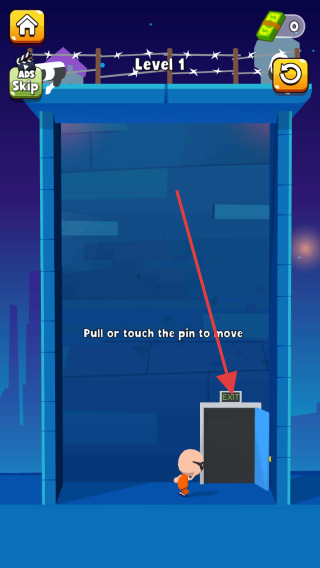 2、在游戏场景中,按照提示Pull or touch the pin to move,通过拉动或触摸插销,帮助角色到达门口。