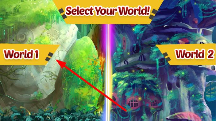 2、在Select Your World1的界面,点击World1,进入绿色森林场景,开始第一世界的探索。