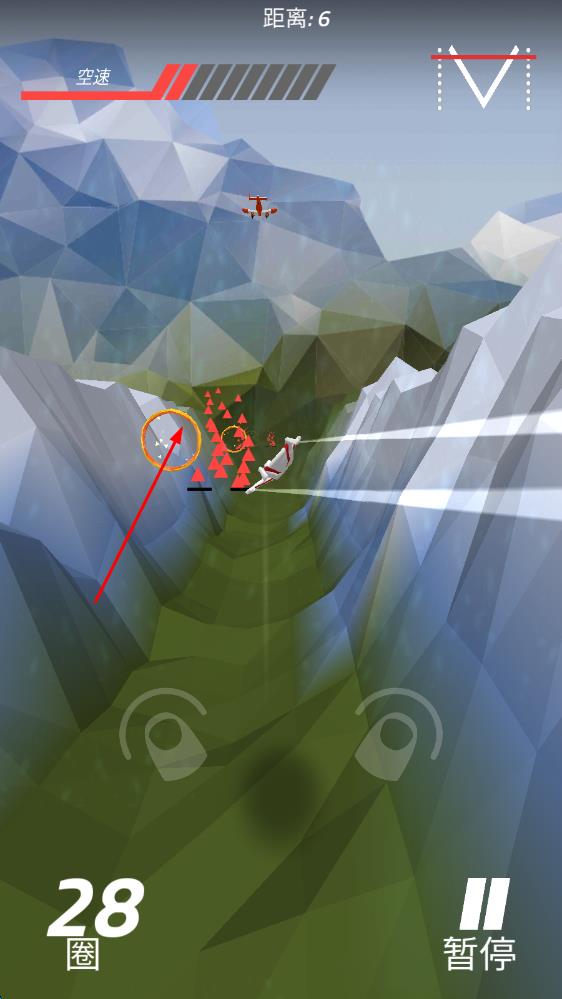 1、进入游戏后,玩家化身为滑翔骑手,身着滑翔翼服置身山涧,通过滑动和点击屏幕操控方向,开始在高空的滑翔之旅。
