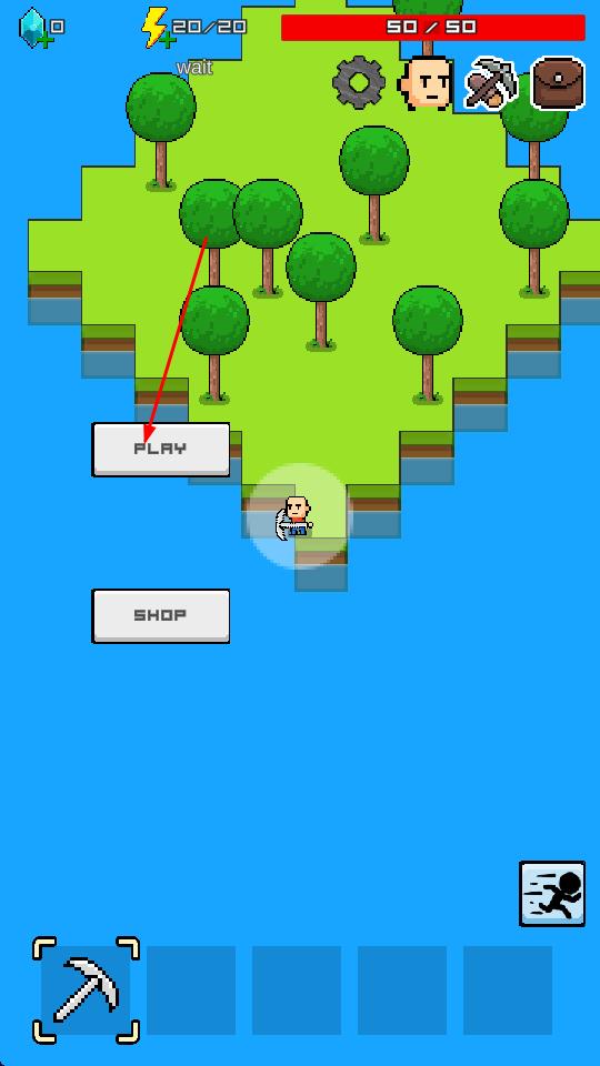 1、下载完成然后在主界面,点击PLAY按钮,操控像素角色进入森林场景,开启生存冒险之旅。