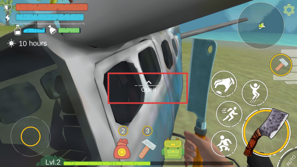 2、靠近飞机时,点击Open交互键,尝试进入飞机内部,探索获取物资,提升角色等级。