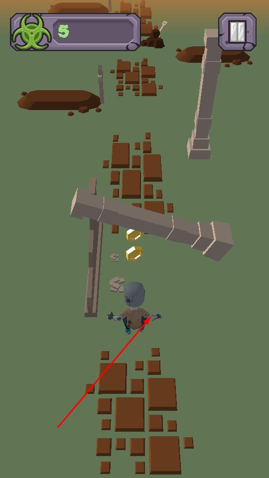 2、奔跑中躲避断裂砖块、横木等障碍,保持移动避免掉落,持续前进积累游戏分数,提升生化数值。