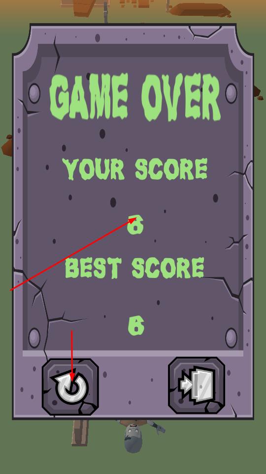 3、触发GAME OVER界面后,查看本次分数与最佳纪录,点击左侧重玩图标,可再次尝试突破成绩。