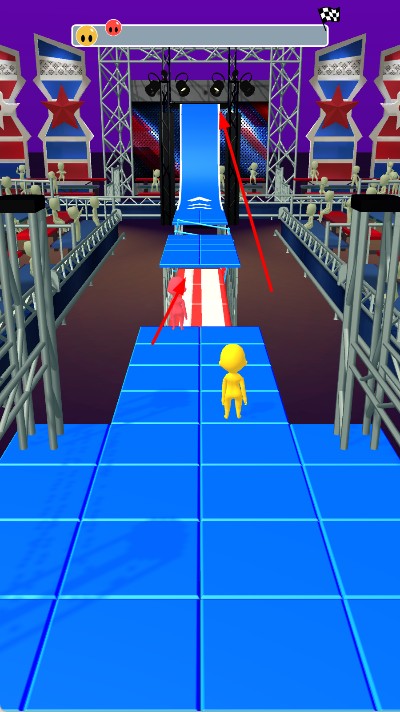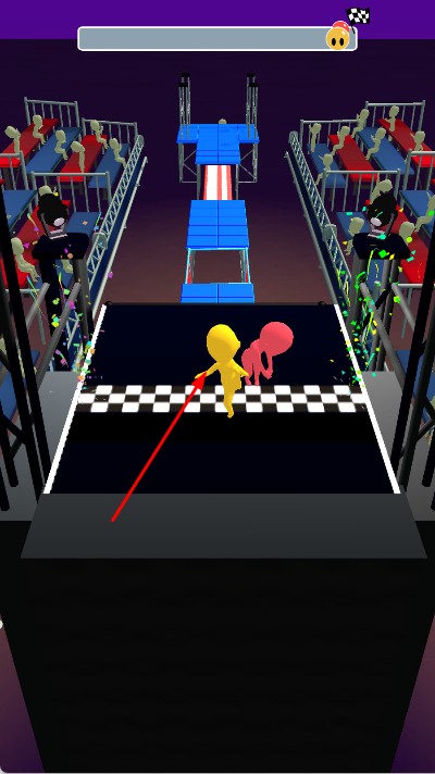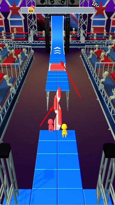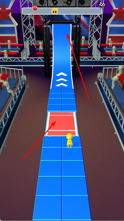 1、立体赛道多元挑战:3D风格打造高低错落的赛道场景,涵盖平台跳跃,弯道冲刺等多样障碍类型,赛道布局随关卡推进愈发复杂,挑战层次丰富。