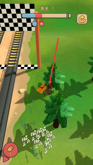 3、优先填补靠近终点,黑白格旗的轨道缺口,要注意躲避场景中的障碍,尽快的完成轨道的铺设。