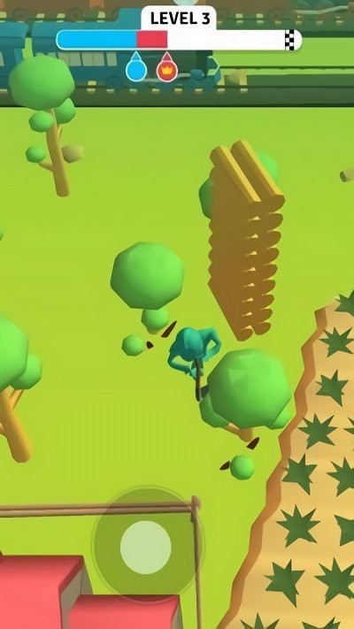 1、点击屏幕控制角色移动,靠近树林里的木头就进行砍伐,底部红圈显示数量,走到木头旁自动搬运。
