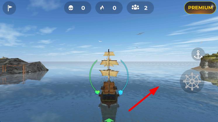 1、进入游戏后选择初始海盗船,熟悉船只操控方式与海域地图,驾驶船只在海上航行,寻找带有资源标识的商船目标。