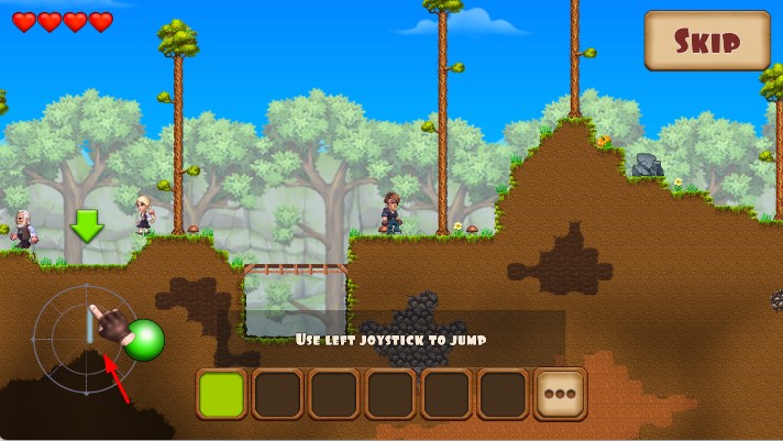 1、进入游戏,点击Play,开启采矿探索之旅,依据指引,用左侧摇杆控制角色移动、跳跃,跨越地形。