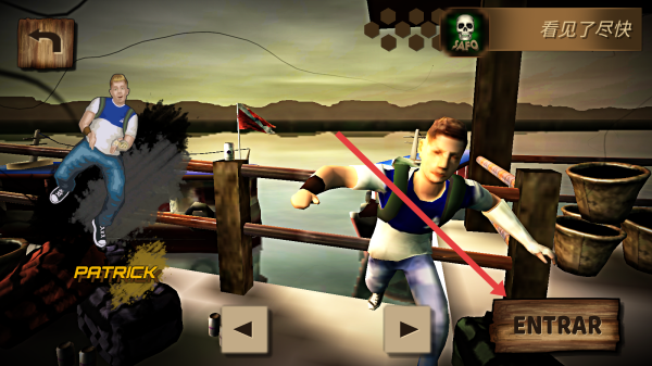 2、场景中操控角色靠近ENTRAR木牌并点击,进入新区域,与Patrick一同推进游戏进程。