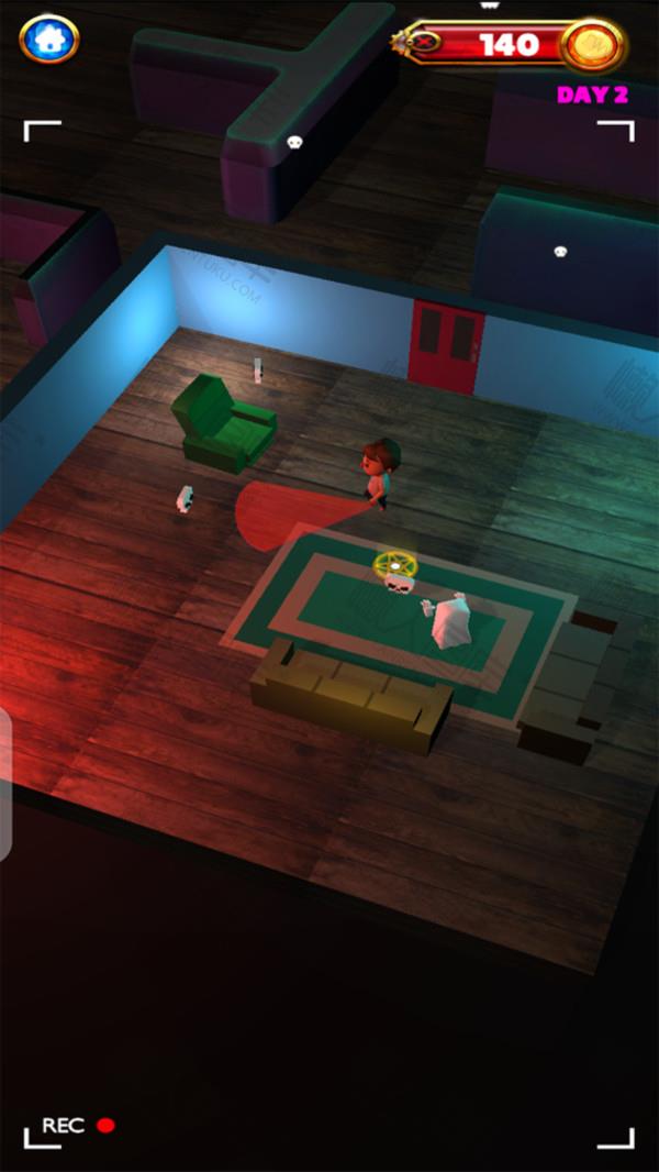 3、道具利用与躲避挑战:借助家具阴影、门后缝隙等事物隐藏身形,观察小男孩移动规律调整行动,完成各级挑战后获取奖励,解锁更复杂的关卡与技能。