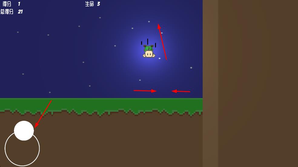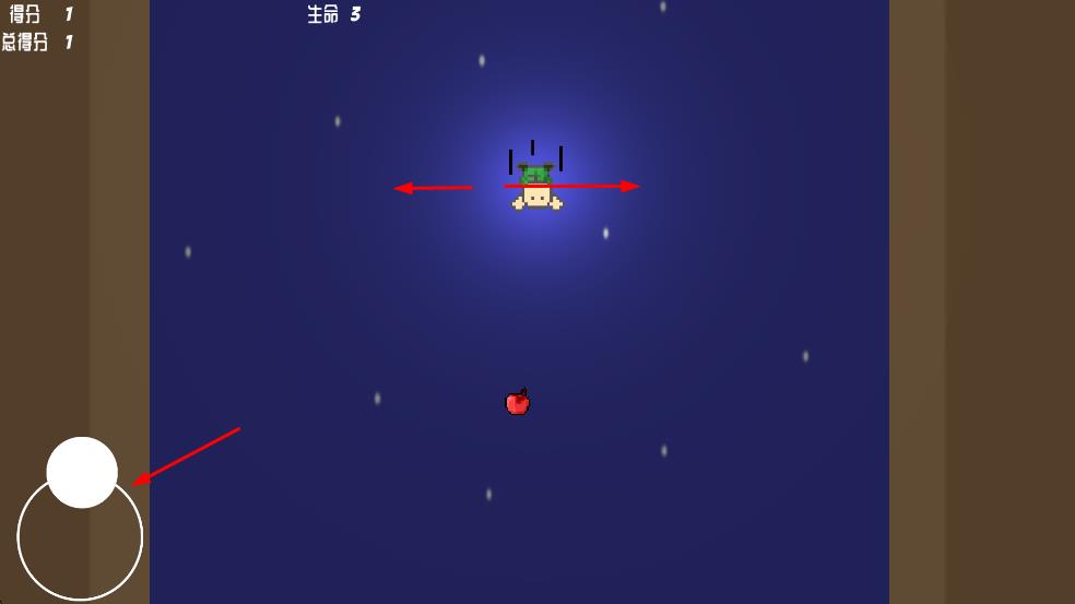 1、滑动左侧圆形摇杆,控制角色左右移动。