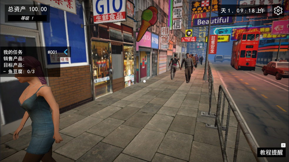 1、进入游戏后,通过左侧的虚拟摇杆进行移动,靠近物品后就会出现交互按钮。