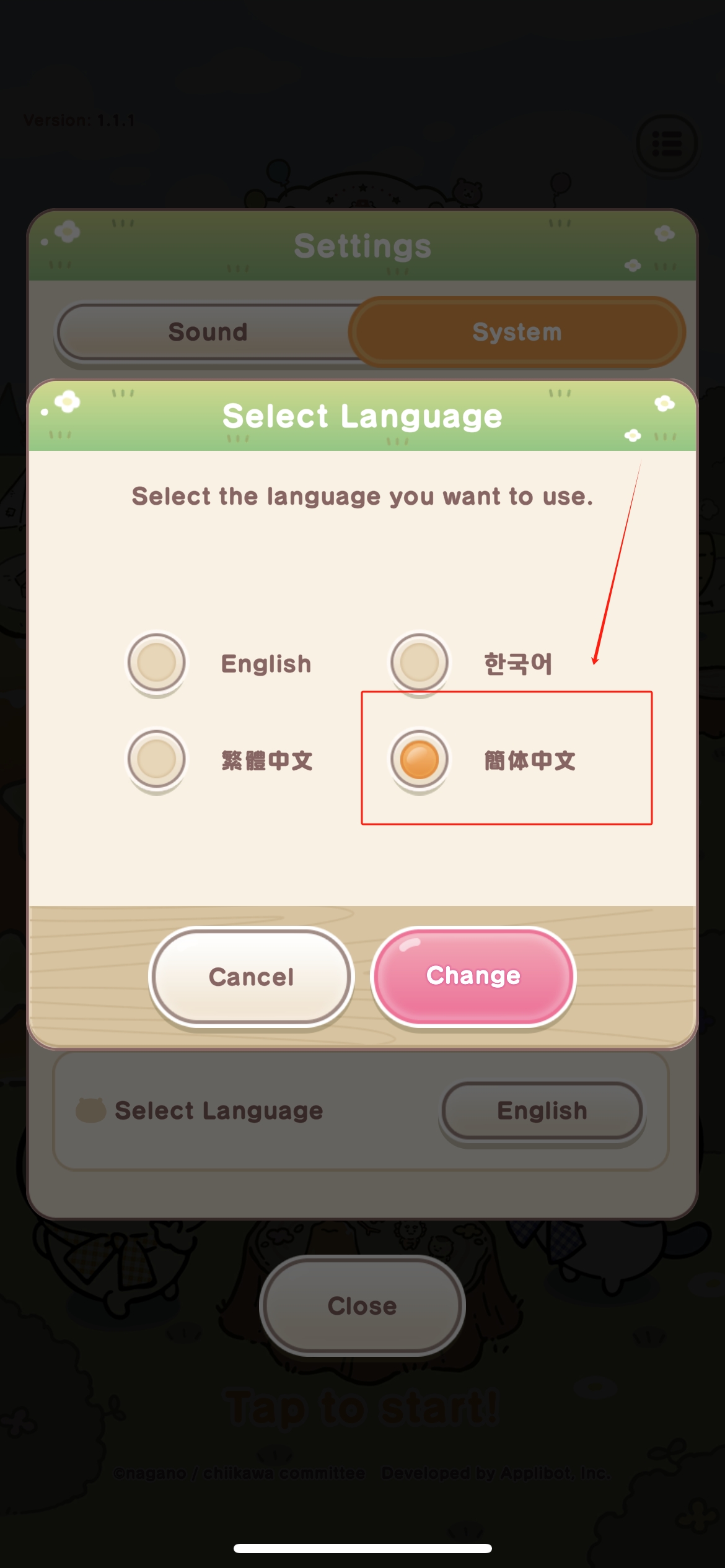 4、点击语言栏之后可以看到可以选择的四种语言,包括繁体中文和简体中文,选择简体中文,点击change;
