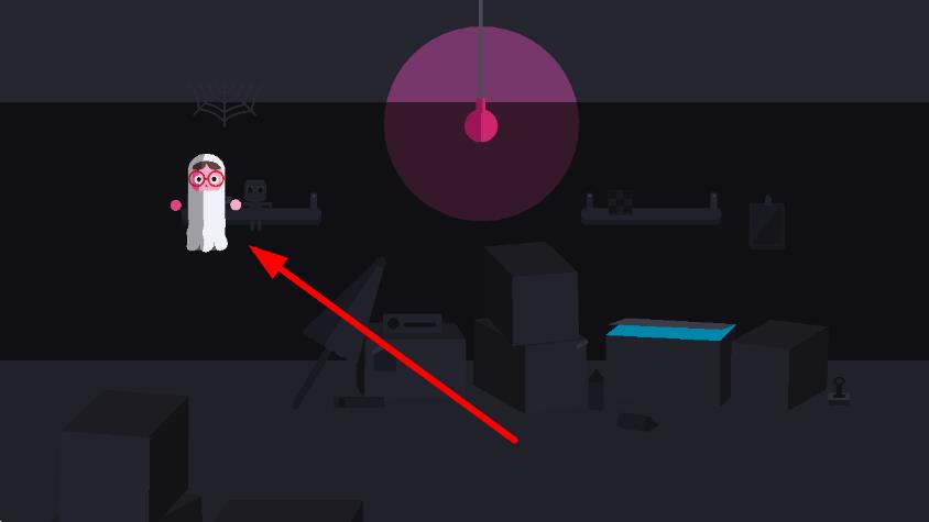 2、孩子进入场景后,观察他们的行动路线,选择合适时机运用道具,实施搞怪吓人计划。