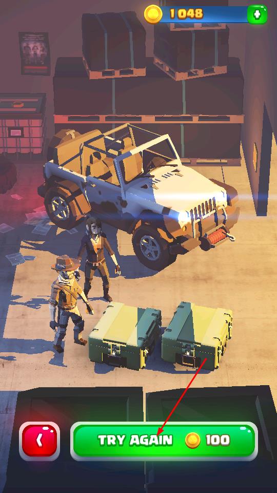 3、若挑战未达成在车库界面点击绿色TRY AGAIN按钮,消耗100金币重新尝试,成功则解锁车辆与宝箱相关剧情,查看进程。