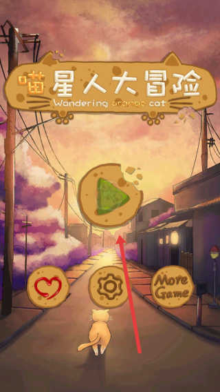 1、在喵星人大冒险主界面,点击中间带三角的饼干形按钮,进入关卡选择页面,开启猫咪的冒险之旅。