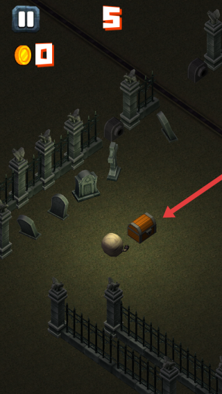 2、进入墓地场景后,操控角色移动,朝着画面中的橙色宝箱方向行进,靠近并获取宝箱内的金币,继续探索场景收集资源。